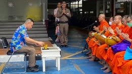 ผู้กำกับการ สน.ห้วยขวาง พร้อมข้าราชการตำรวจสน. ห้วยขวาง ร่วมกิจกรรมทำบุญตักบาตร ข้าวสาร อาหารแห้ง พร้อมไหว้สิ่งศักดิ์สิทธิ์ประจำสน.ห้วยขวาง เนื่องในวันสงกรานต์ 2568 บริเวณ ลานหน้าสน.ห้วยขวาง เพื่อเสริมสิริมงคล ให้แก่ข้าราชการตำรวจ สน.ห้วยขวาง