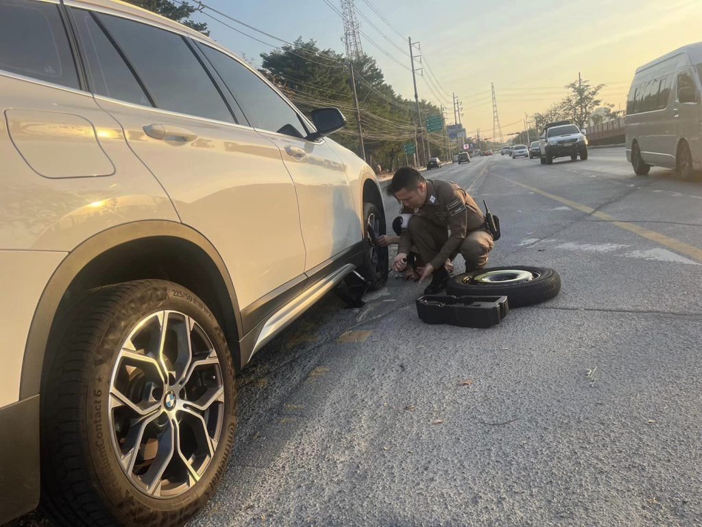 คนดี คนเดิมครับ สุภาพบุรุษจราจร สน.ห้วยขวางช่วยเหลือ เปลี่ยนยางรถยางแตก บริเวณถนน เทียนร่วมมิตร
