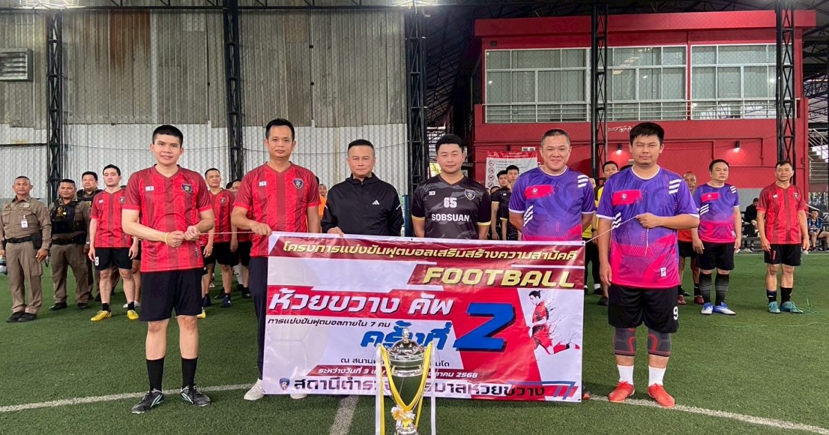 ผู้กำกับการ สน.ห้วยขวาง นำทีมลุยจัดแข่งขันฟุตบอล ห้วยขวางคัพ ครั้งที 2 ตามโครงการแข่งขันฟุตบอลเสริมสร้างความสามัคคี และเสริมสร้างสมรรถภาพร่างกาย และสร้างขวัญกำลังใจแก่เจ้าหน้าที่ตำรวจ สน.ห้วยขวาง