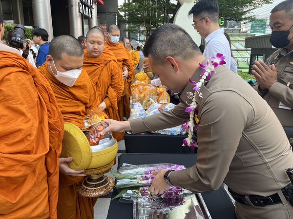 ผู้กำกับการ สน.ห้วยขวาง ร่วมทำบุญตักบาตรพระสงฆ์ 99 รูป เพื่อความเป็นสิริมงคล เนื่องในศุภมงคลสมัยขึ้นปีใหม่ไทย ณ ลานกิจกรรมด้านหน้าห้างเซ็นทรัล พระราม 9 แขวง/เขต ห้วยขวาง กทม.