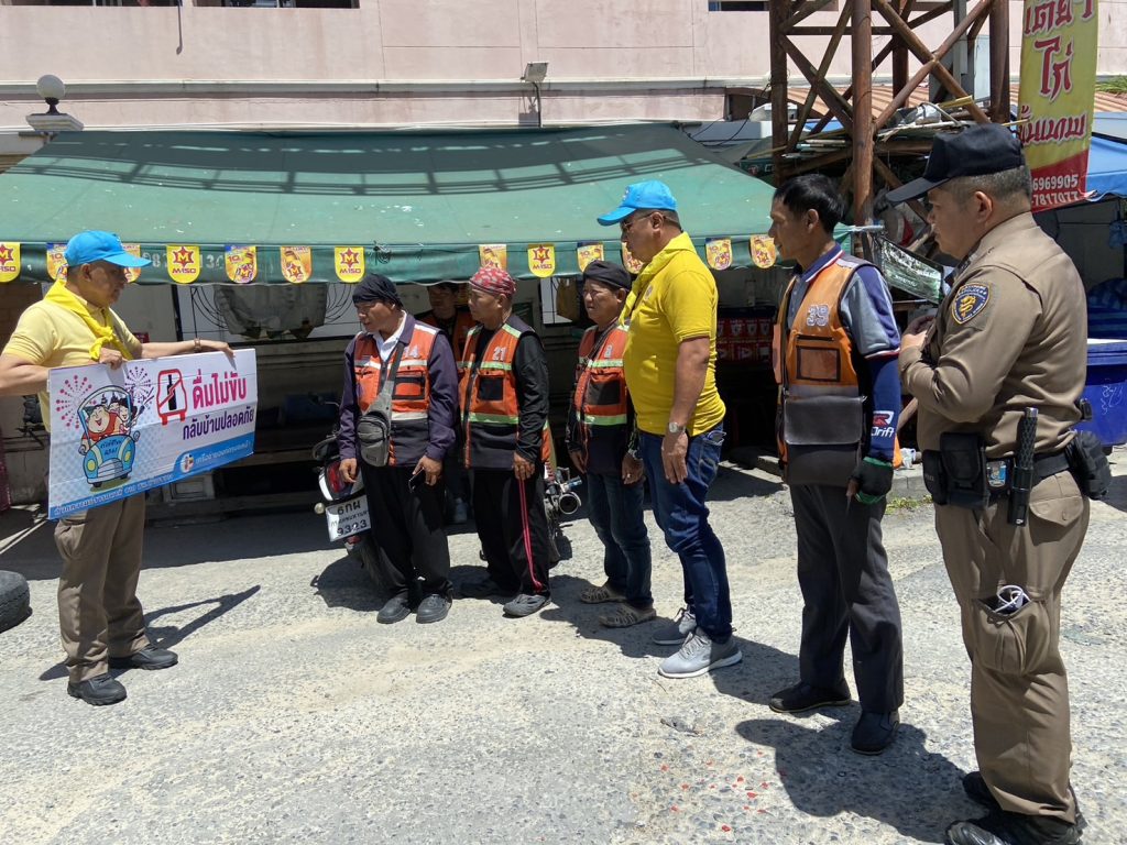 รณรงค์ความปลอดภัยทางถนนช่วงเทศกาลสงกรานต์ 2568 ภายใต้โครงการ “ขับขี่ปลอดภัย ลดเสี่ยงอุบัติเหตุทางถนน” เพื่อสร้างการรับรู้ในหมู่ประชาชนเกี่ยวกับความสำคัญของการขับขี่อย่างปลอดภัย ลดการบริโภคเครื่องดื่มแอลกอฮอล์ และลดอุบัติเหตุในช่วงเทศกาลสงกรานต์ ภายใต้แนวคิด “ขับไม่ดื่ม ดื่มไม่ขับ กลับบ้านปลอดภัย” กับประชาชน วินจักรยานยนต์ ในเขตพื้นที่