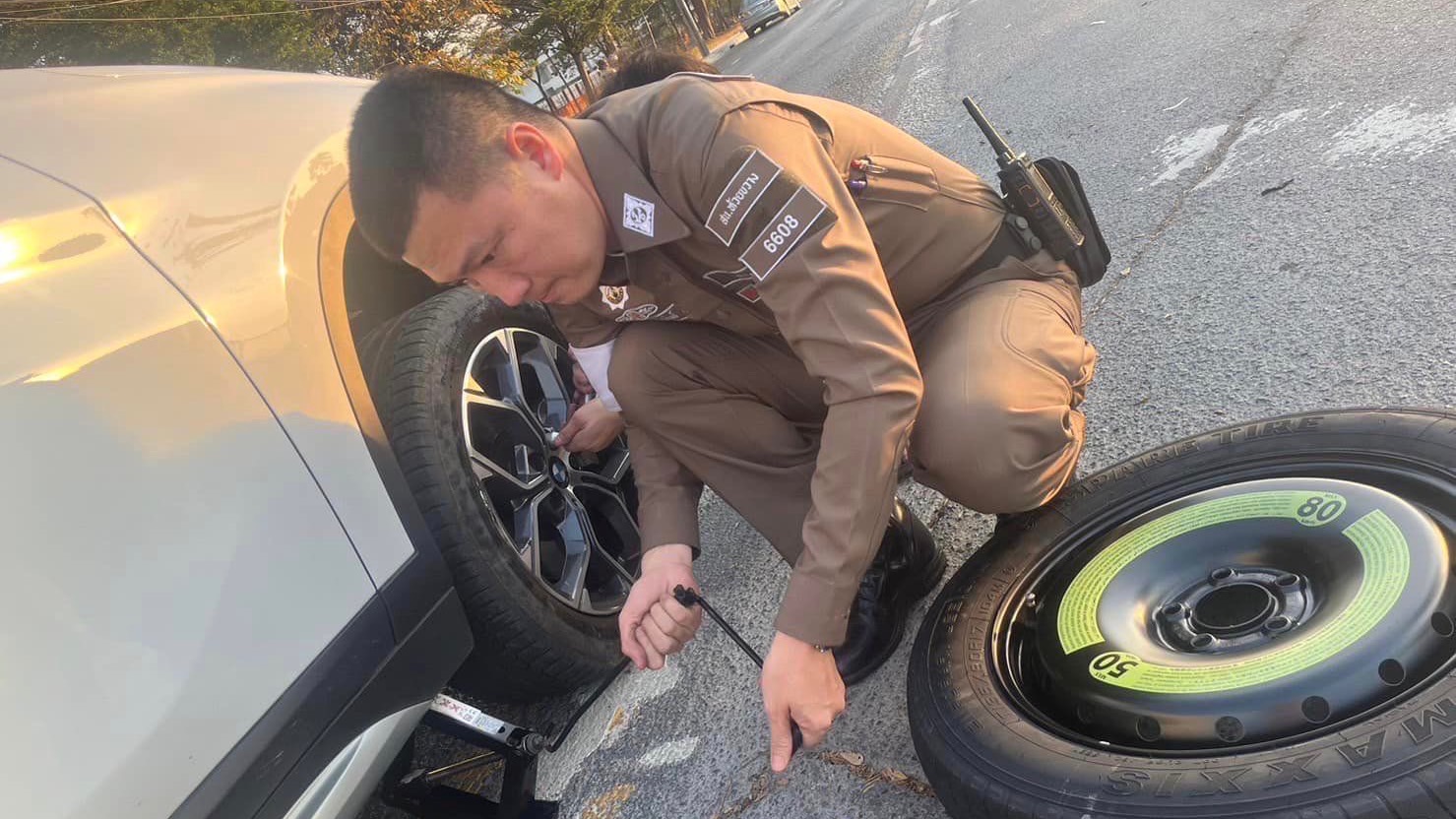 วันที่ 2 มกราคม 2567 เวลา 07.30 น. ด.ต.พิเชษฐ์ วีระศิลป์ ผบ.หมู่ จร.สน.ห้วยขวาง ได้ให้การช่วยเหลือ